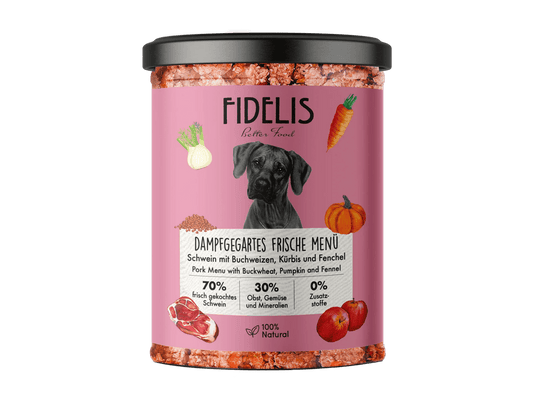 Fidelis er dyrere enn vanlig våtfôr fordi det er laget med høyere andel kjøtt og råvarer av høy kvalitet. Oppskriftene er helt fri for kunstige tilsetninger og fyllstoff, og de dampkokes skånsomt ved kun 90 °C – hele 40 °C lavere enn tradisjonelt våtfôr på metallboks. Dette bevarer mer næring og smak, men gjør produksjonen mer tidkrevende og kostbar. Kort sagt betaler man for bedre råvarer og en prosess som prioriterer hundens helse fremfor rimelig produksjon.