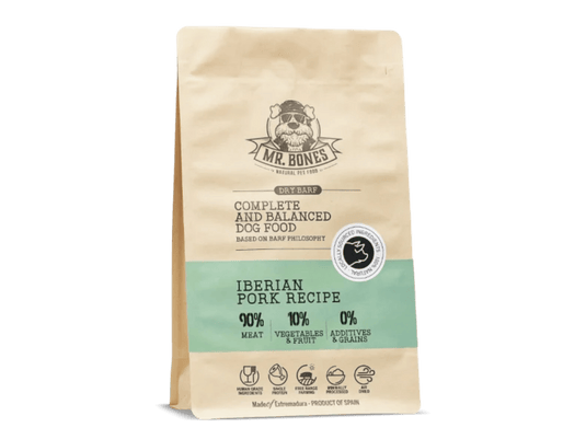 Med 90 % iberisk gris og nøye utvalgte boostere er Mr. Bones et fôr som støtter sterk muskulatur, sunn hud, blank pels og et robust immunforsvar – helt uten kunstige tilsetninger.