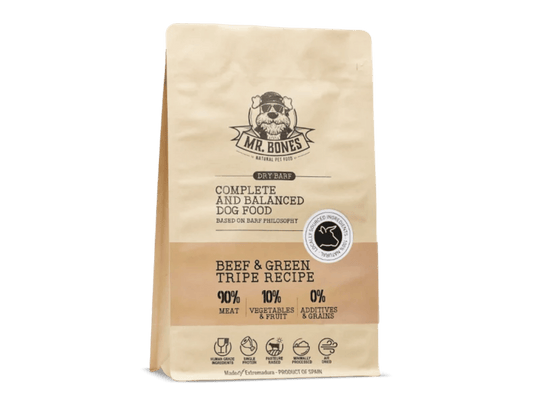 Mr. Bones lufttørket råfôr av 90 % kalv for sensitive hunder er et 100 % naturlig, skånsomt lufttørket monoprotein hundefôr som passer selv for de mest sensitive hundene. Hver ingrediens er nøye utvalgt for å støtte hundens helse på en naturlig måte. I tillegg til kalv består oppskriften av 10 % naturlige boostere som pære, gresskar, brokkoli og agurk. Den skånsomme lufttørkingsprosessen bevarer både smak og næringsstoffer uten bruk av høy varme, slik at hunden får maksimalt utbytte av råvarene.