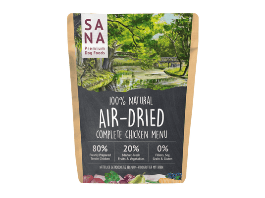 Lufttørket fôr fra Sana inneholder 80 % animalske proteiner av høy kvalitet, som er betydelig dyrere råvarer enn det som ofte brukes i tradisjonelt fôr. Produksjonen er mer kostbar fordi råvarene tørkes skånsomt ved lav temperatur over tid for å bevare næringsstoffer, smak og naturlige enzymer. Resultatet er et konsentrert, artsriktig og næringsrikt fôr med svært høy biotilgjengelighet.